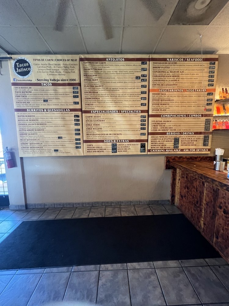 Introducing Tacos Jalisco, a vibrant spot in Vallejo, CA that offers a diverse menu with options for pescatarians, vegans, and limited vegetarian choices. With great portions at reasonable prices, this restaurant provides a fun dining experience with its colorful interior design. Customers rave about the attentive service and delicious food, such as the shrimp and chicharron dish, super burrito, and lengua tacos. The tortillas are highlighted for their quality and flavor, making each dish a standout. With a commitment to improving the dining experience, Tacos Jalisco continues to update and enhance its interior. From the welcoming atmosphere to the tasty dishes, this restaurant is a must-visit for those seeking authentic, flavorful Mexican cuisine.
